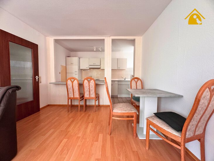 - Helles Wohn-Esszimmer mit offener Kochnische