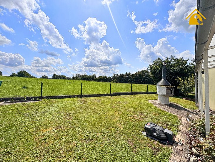 - Hinter dem Haus erstreckt sich eine unverbaubare Wiesenfläche, die für ein einmaliges Gefühl von Weite und Natur sorgt.