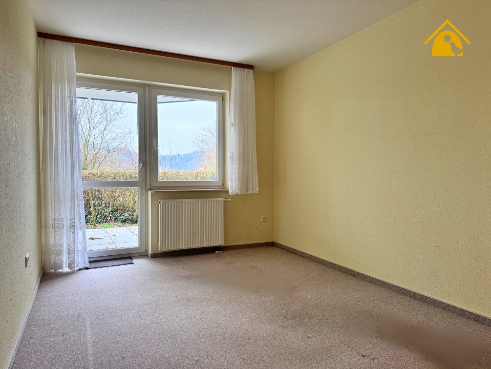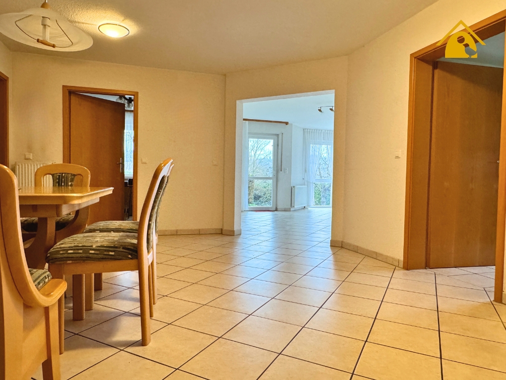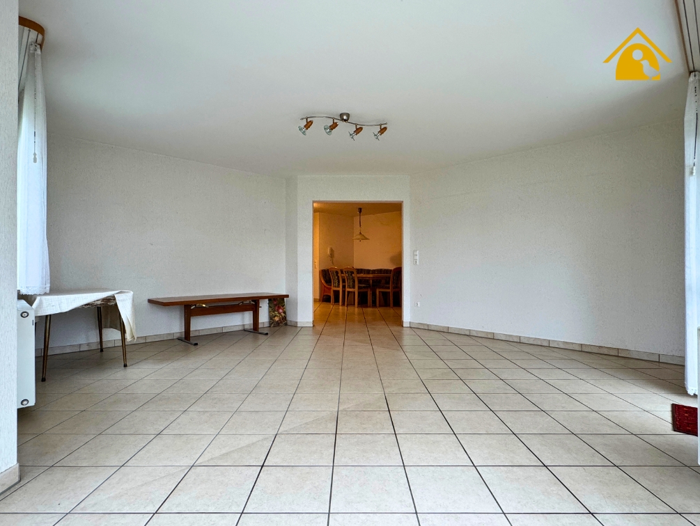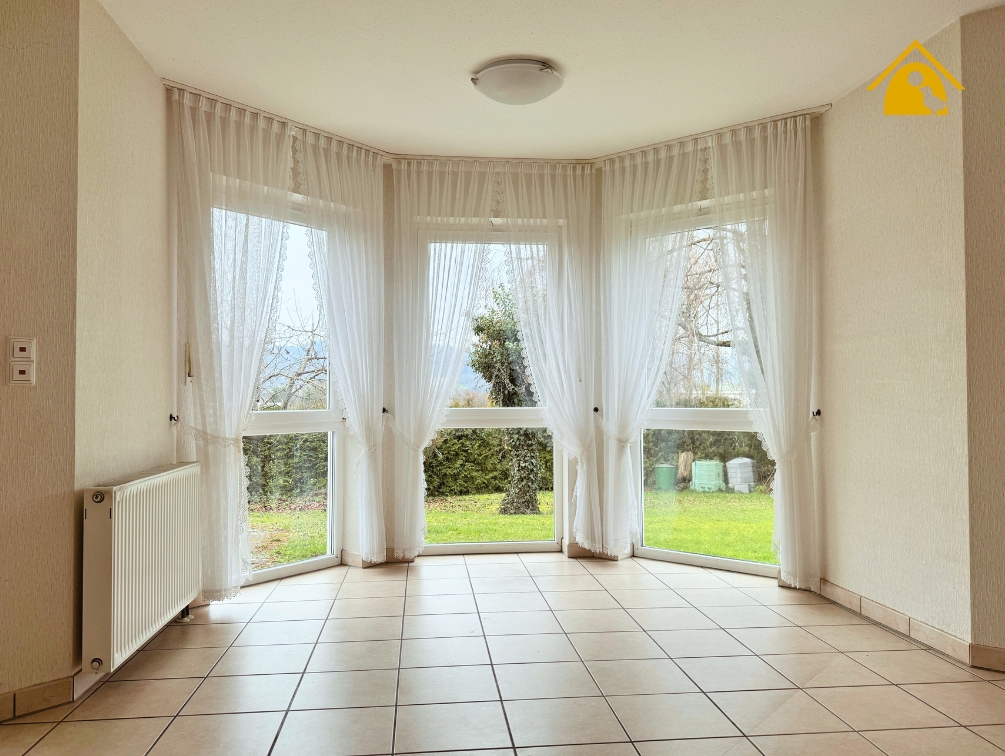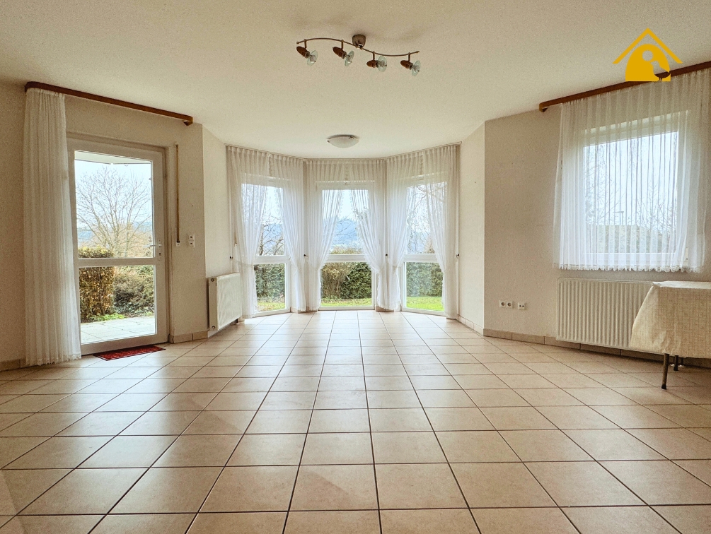- Der großzügige Wohnraum überzeugt durch seine helle Gestaltung, die halbrunde Fensterfront (Erker) sowie den direkten Zugang zur Terrasse und in den Garten.