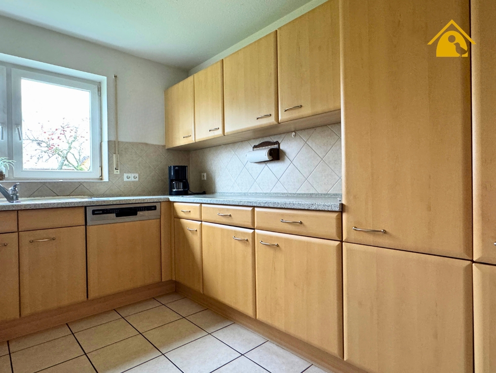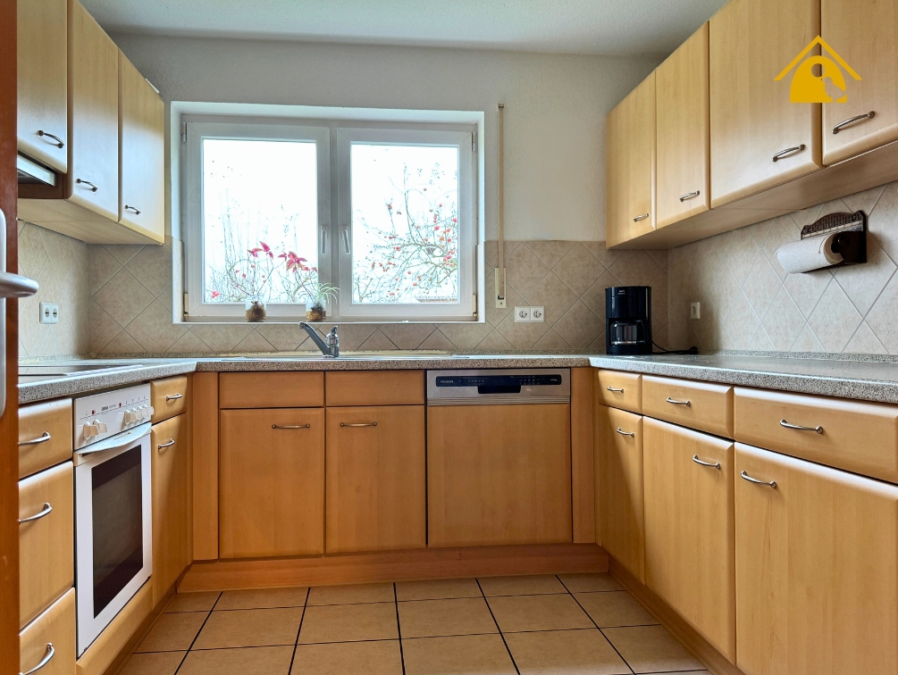 - Ausgestattet mit Spülmaschine, Herd, Backofen, Spüle sowie einem Fenster.