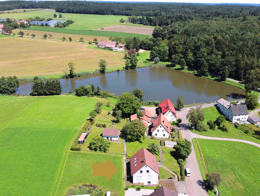 Hier wohnen Sie idyllisch im Grünen mit Blick auf den Völkerweiher – und profitieren trotzdem von einer zentralen Lage: Die nächste Autobahnauffahrt erreichen Sie in nur ca. 7 Minuten und die nächsten Einkaufmöglichkeiten in Fichtenau in ca. 3 Minuten.