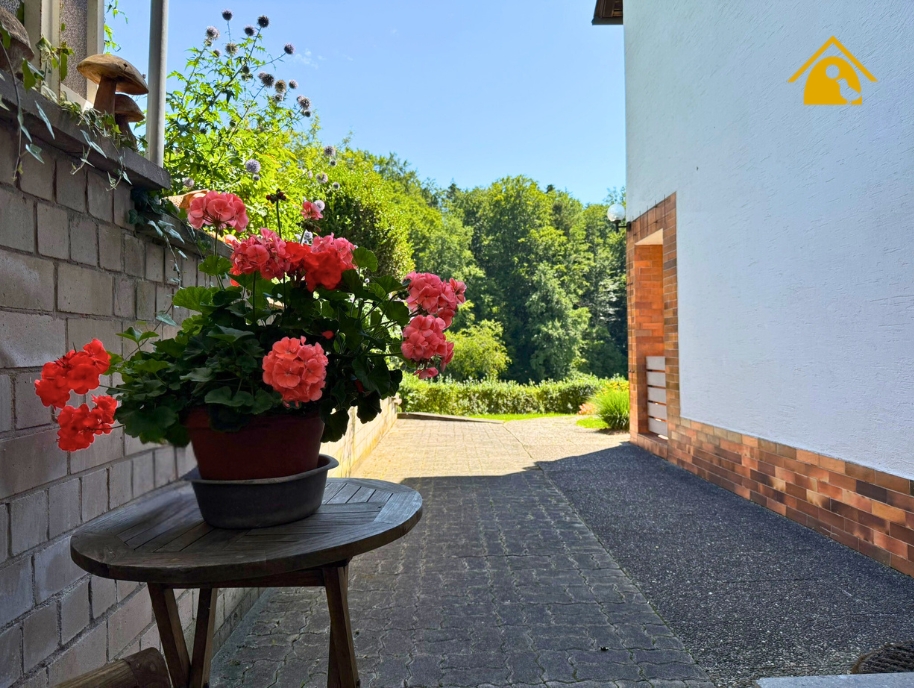 - Balkon im OG, Terrasse im EG mit Blick ins Grüne