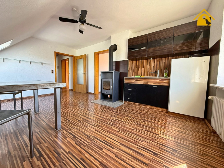 - Offener Wohnbereich mit Küche, Essplatz & Kamin