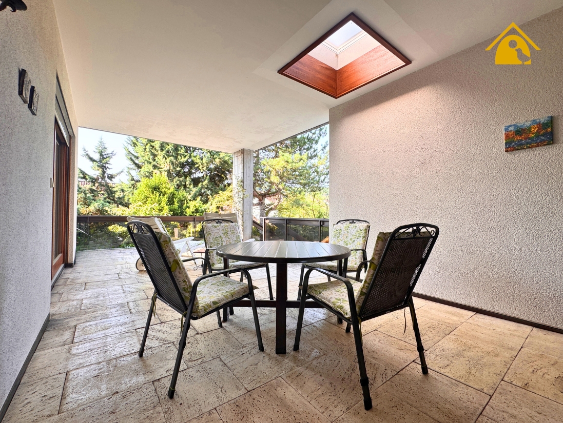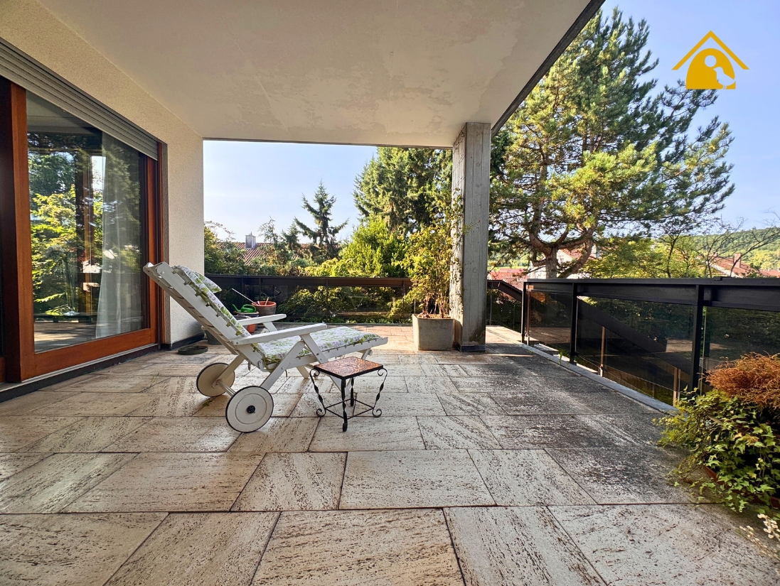 - Großzügige Terrasse mit Natursteinboden und Dachterrasse mit Betonplatten