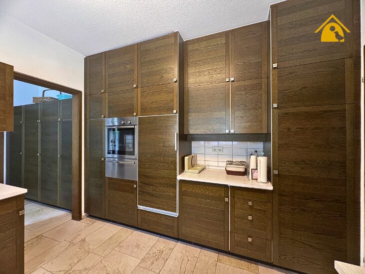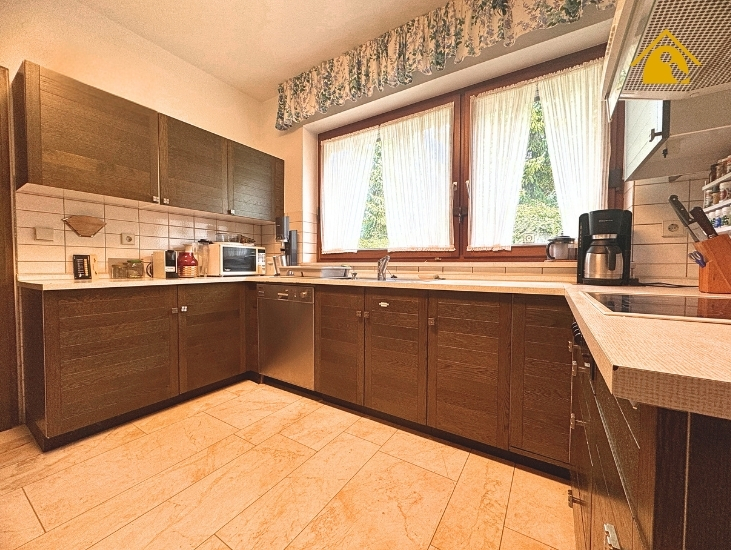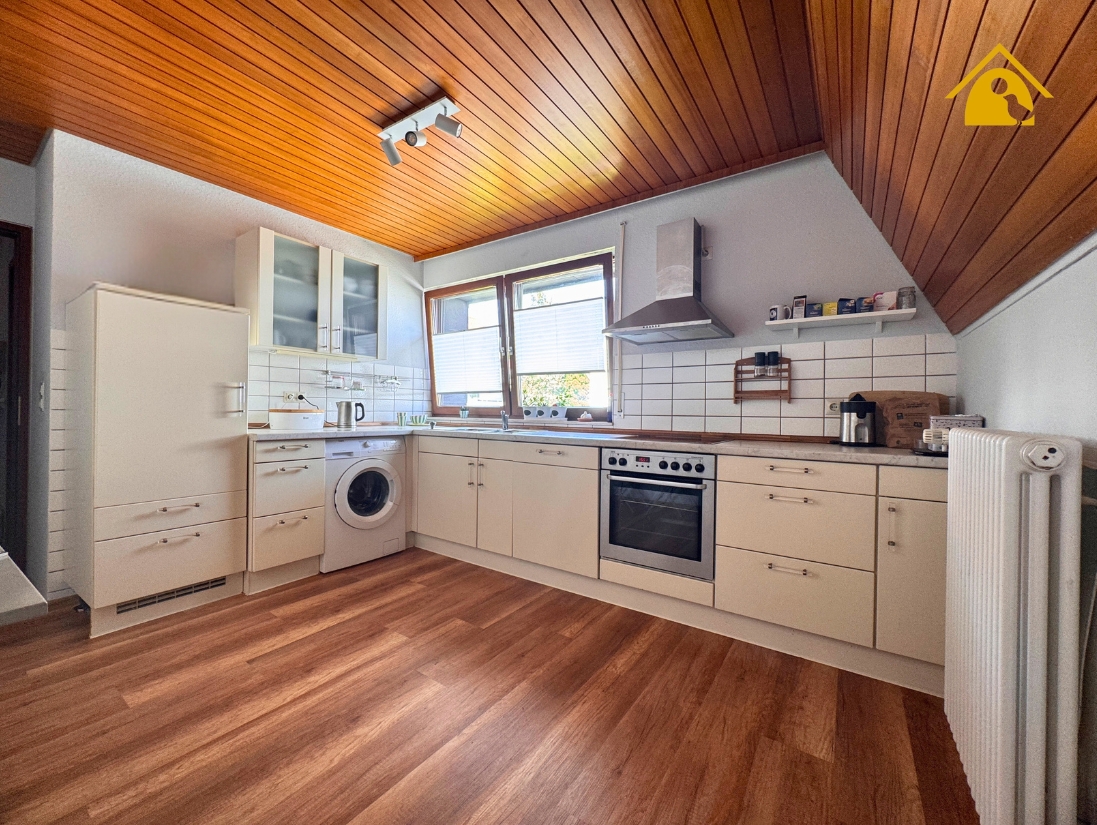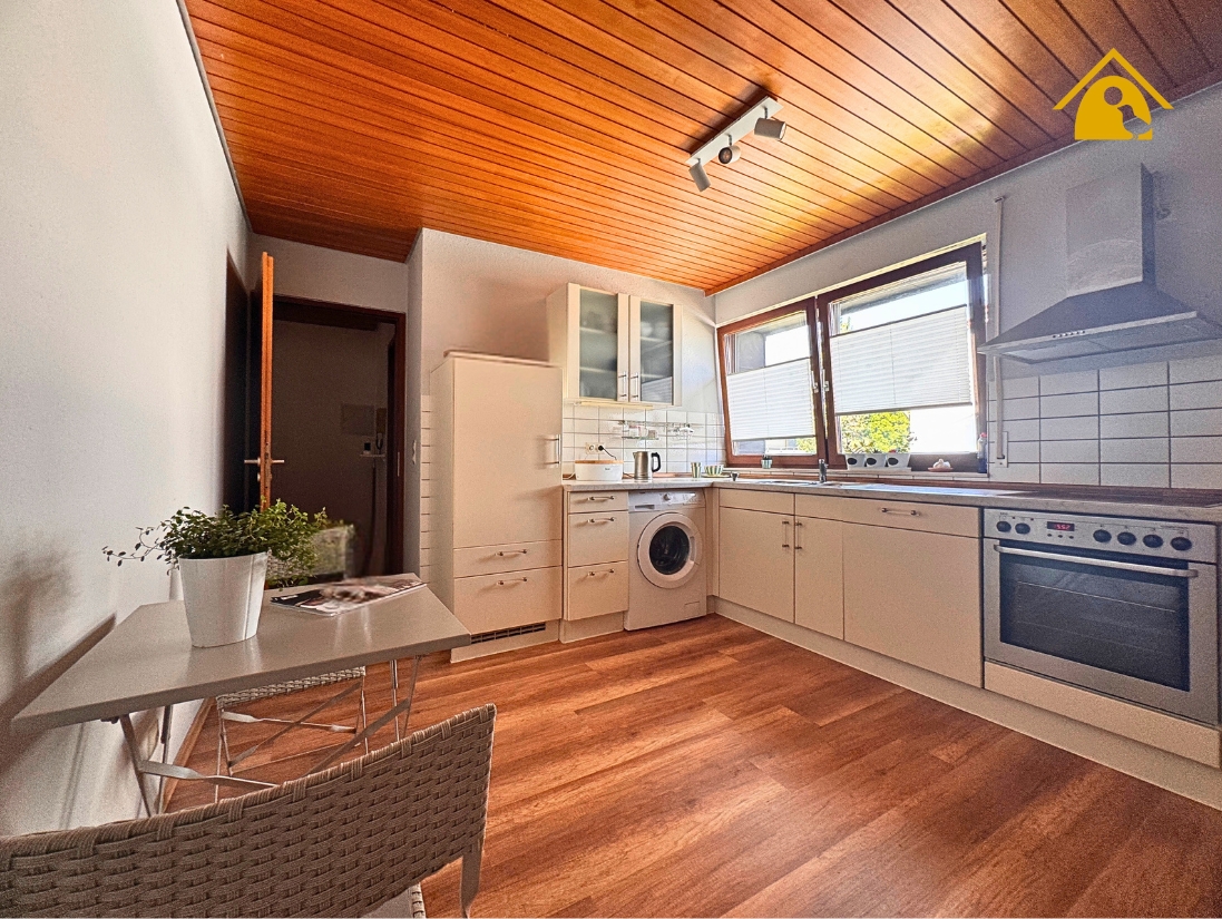 - Küche mit Einbauküche und angrenzendem Hauswirtschaftsraum mit Zugang nach draußen