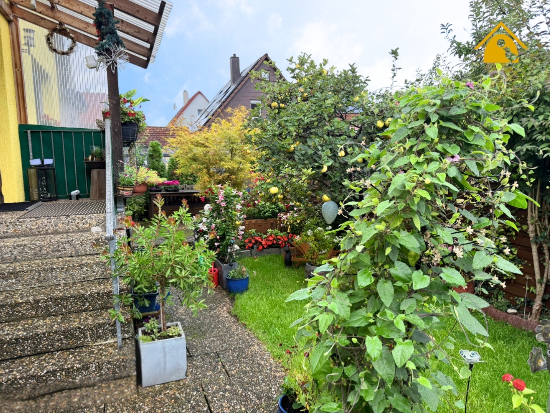• Liebevoll gestalteter, pflegeleichter Garten mit Terrasse
