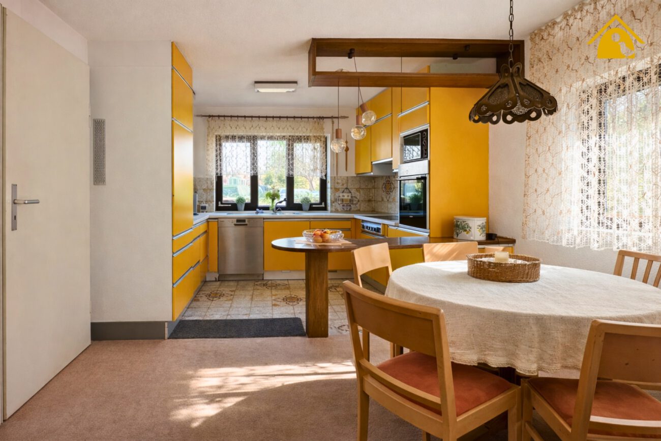 Das Haus befindet sich in einem gepflegten, überwiegend ursprünglichen Zustand und bietet damit ideale Voraussetzungen für individuelle Modernisierungen nach eigenen Vorstellungen. Die vorhandenen Elemente verleihen der Immobilie einen gewissen Retro-Charme, während Struktur und Substanz eine solide Basis für die Zukunft bilden.
