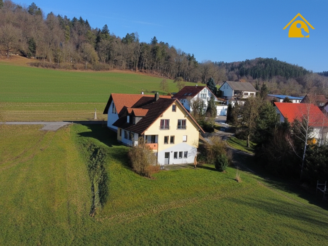 Diese Immobilie ist mehr als ein Haus. Sie ist Rückzugsort, Lebensraum und Arbeitsstätte zugleich – mit über 280 m² nutzbarer Fläche, in herrlicher Ortsrandlage von Bühlerzell.