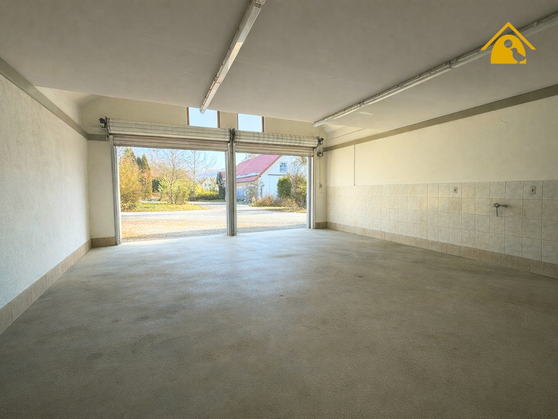 - XXL Garage / Werkstatt: mit 85 m² , hohe Decken und Sektionaltoren – perfekt für Fuhrpark, Hebebühne oder Lager.