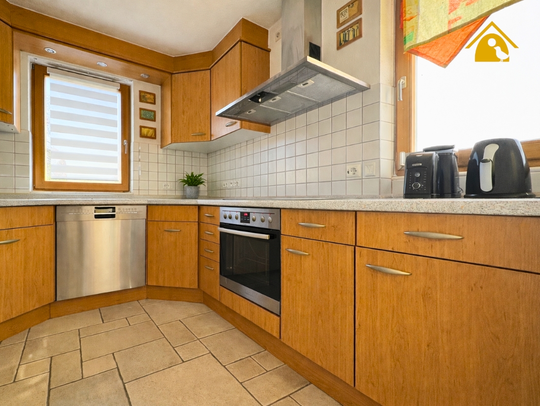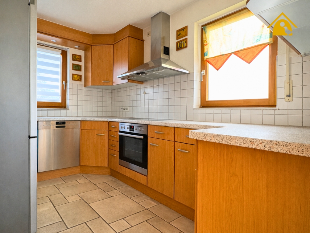 Die angrenzende Küche mit Speisekammer sorgt für kurze Wege und hohen Alltagskomfort.